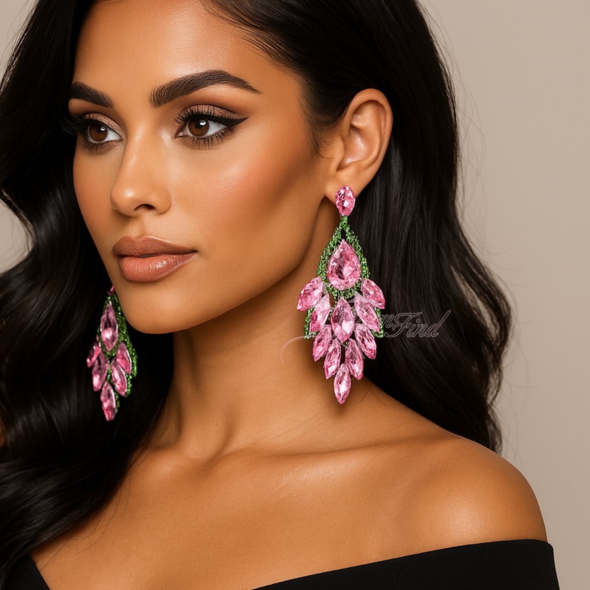 Pink & Green Chandelier Earrings โ Rhinestone Sorority Glam, AKA Inspired Jewelry