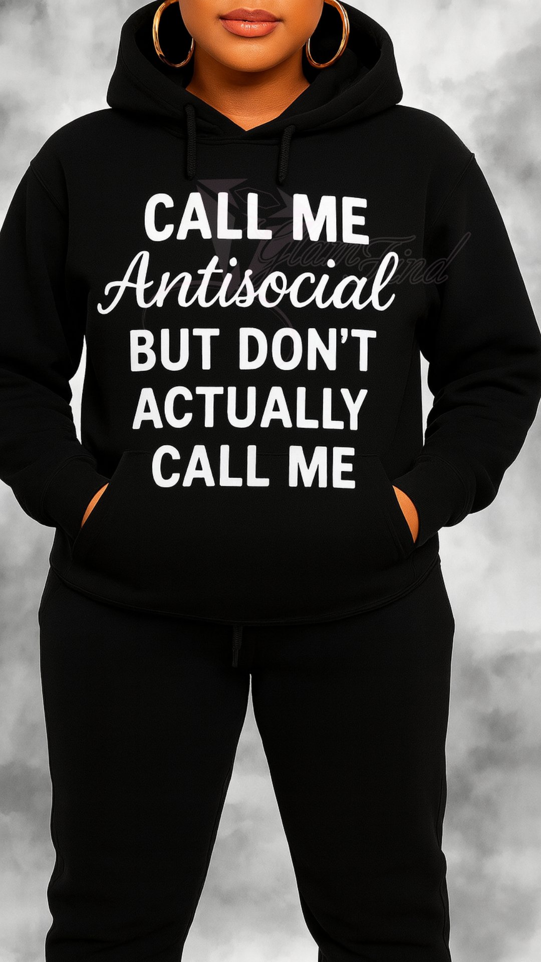 Unisex Call Me Antisocial Hoodie, Funny Quote Hoodie for Women, Introvert Statement Sweatshirt
